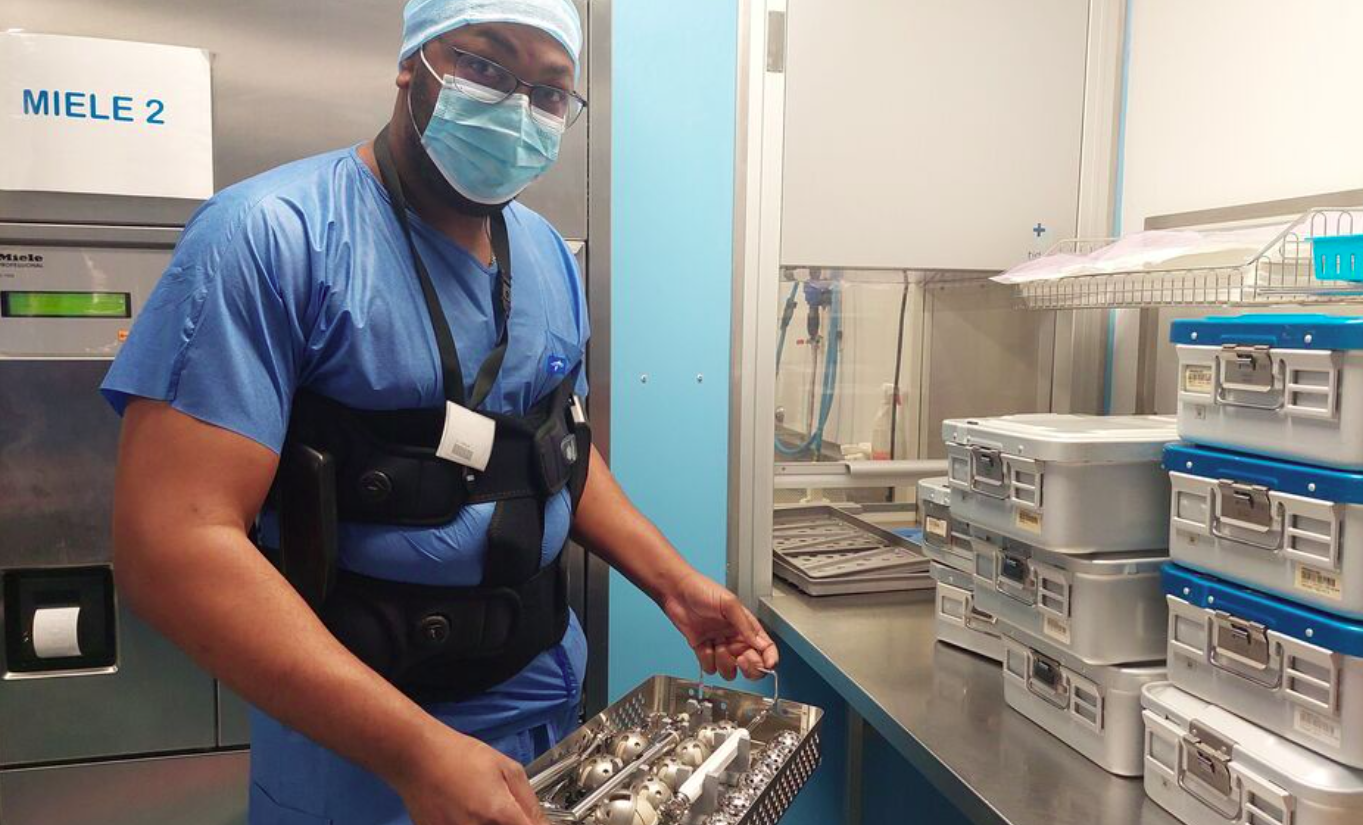 Scalpels, marteaux, ciseaux… Hemerick conditionne les instruments destinés au bloc opératoire. Cet agent de stérilisation à la clinique Saint-Louis, à Poissy (Yvelines), est chargé du tri, du lavage et de la constitution des kits utilisés en chirurgie. Un métier physique, avec des conditions de travail difficiles, qui générait beaucoup de turnover dans le service. Mais ça, c’était avant l’arrivée des exosquelettes. « Depuis un an, l’équipe est stable, elle n’a pas changé, et nous n’avons plus eu d’arrêts maladie liés au travail », se réjouit Laura Bestman, directrice projets dans l’établissement. En investissant 30 000 euros dans l’achat de trois exosquelettes, la clinique a souhaité prévenir les troubles musculosquelettiques (TMS), comme le mal de dos. Ils représentent d’ailleurs la première cause d’arrêts de travail en France, selon un rapport de l’assurance maladie datant de 2023.