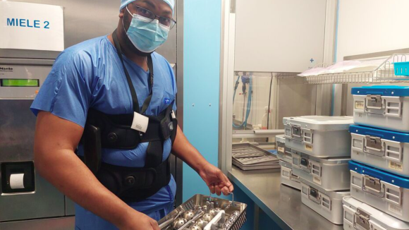 Scalpels, marteaux, ciseaux… Hemerick conditionne les instruments destinés au bloc opératoire. Cet agent de stérilisation à la clinique Saint-Louis, à Poissy (Yvelines), est chargé du tri, du lavage et de la constitution des kits utilisés en chirurgie. Un métier physique, avec des conditions de travail difficiles, qui générait beaucoup de turnover dans le service. Mais ça, c’était avant l’arrivée des exosquelettes. « Depuis un an, l’équipe est stable, elle n’a pas changé, et nous n’avons plus eu d’arrêts maladie liés au travail », se réjouit Laura Bestman, directrice projets dans l’établissement. En investissant 30 000 euros dans l’achat de trois exosquelettes, la clinique a souhaité prévenir les troubles musculosquelettiques (TMS), comme le mal de dos. Ils représentent d’ailleurs la première cause d’arrêts de travail en France, selon un rapport de l’assurance maladie datant de 2023.