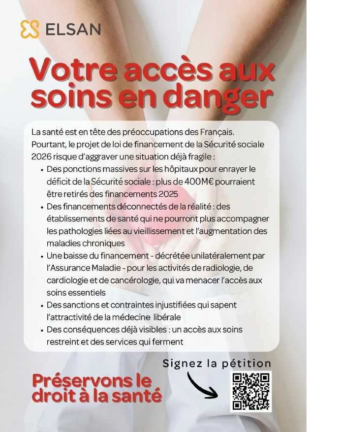 Face au contexte particulièrement tendu du PLFSS (Projet de loi de financement de la sécurité sociale pour 2026), les établissements du groupe Elsan souhaitent attirer l’attention des usagers et de leurs équipes sur les enjeux actuels.
