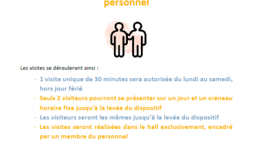 Seuls 2 visiteurs pourront se présenter sur un jour et un créneau horaire qui sera fixe jusqu’à la levée du dispositif.