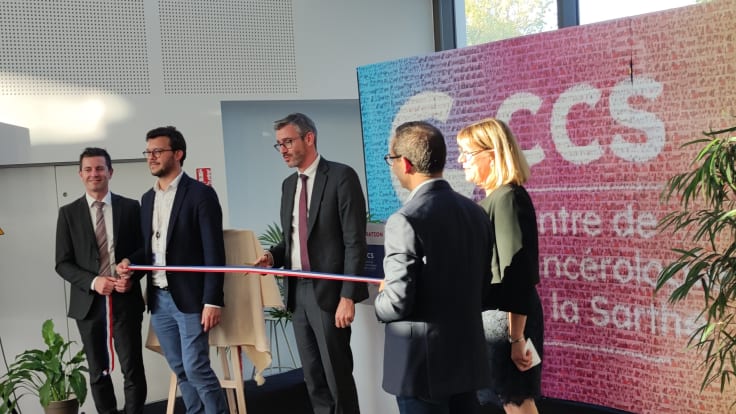 Le Centre de Cancérologie de la Sarthe a été inauguré ce vendredi 6 octobre 2023 par Jérôme Jumel, Directeur général de l’Agence régionale de santé Pays de la Loire et les directions du Centre Hospitalier du Mans, du Centre Jean Bernard et de la Clinique Victor Hugo ; en présence d’Emmanuel Aubry, préfet de la Sarthe, Stéphane Le Foll, ancien ministre et maire du Mans, Valérie Radou, conseillère régionale déléguée à la santé, Dominique Le Mèner, président du conseil départemental de la Sarthe.