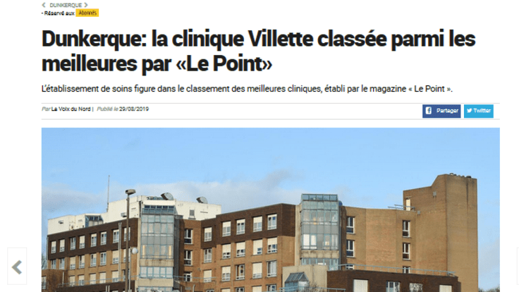 La clinique Villette dans La Voix du Nord pour son classement dans Le Point