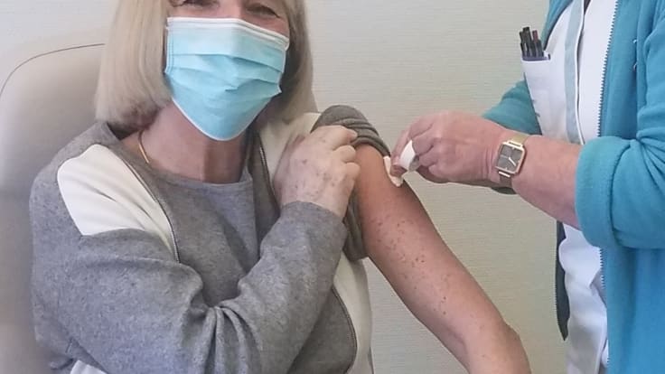 Ici, Christine Cancel, Directrice Générale de la Polyclinique de Poitiers et de la Clinique du Fief de Grimoire se faisant vacciner.