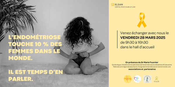 L’Hôpital privé d’Eure-et-Loir organise une journée de sensibilisation dédiée à l’endométriose et destinée au grand public, le 28 mars 2025, de 9h30 à 16h30, dans le hall d’accueil. Cette maladie inflammatoire chronique encore peu connue du grand public touche 10% des femmes en France, soit une femme sur 10 en âge de procréer. Emmanuel Macron a d’ailleurs lancé en 2022 une stratégie nationale de lutte contre l'endométriose, devenue un véritable enjeu de santé publique.