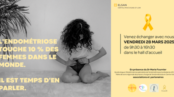 L’Hôpital privé d’Eure-et-Loir organise une journée de sensibilisation dédiée à l’endométriose et destinée au grand public, le 28 mars 2025, de 9h30 à 16h30, dans le hall d’accueil. Cette maladie inflammatoire chronique encore peu connue du grand public touche 10% des femmes en France, soit une femme sur 10 en âge de procréer. Emmanuel Macron a d’ailleurs lancé en 2022 une stratégie nationale de lutte contre l'endométriose, devenue un véritable enjeu de santé publique.