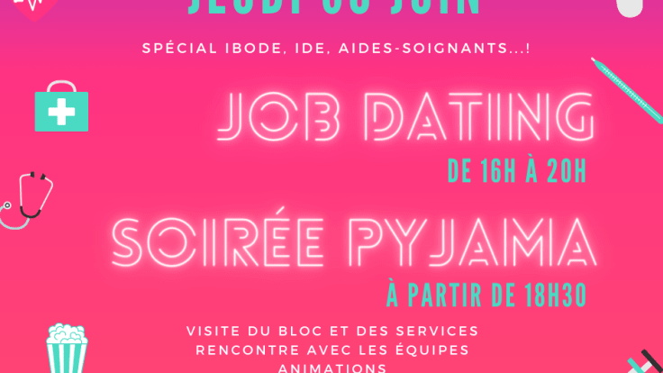 L’hôpital privé d’Eure-et-Loir organise un Job Dating le jeudi 30 juin, de 16h à 20h, à destination des IBODE (infirmiers de bloc opératoire), infirmiers et aides-soignants. À partir de 18h30, une soirée pyjama permettra aux soignants et aux étudiants de découvrir le bloc opératoire.