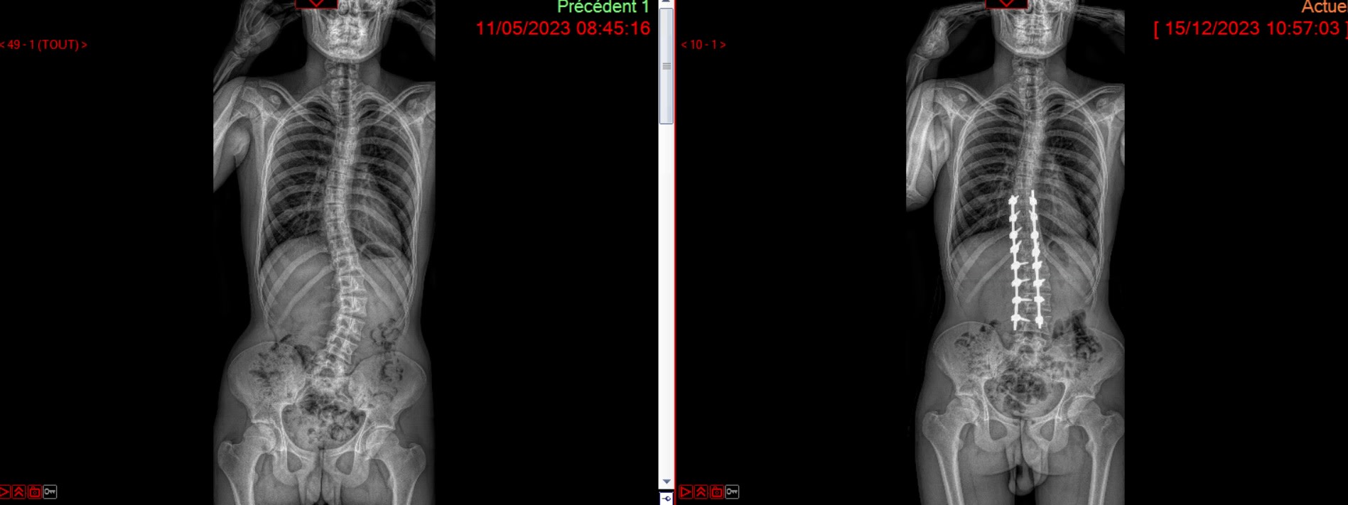 Cependant, il y a certaines conditions pour pouvoir bénéficier d’une chirurgie : la scoliose doit faire plus de 35 degrés, la période de puberté doit être passée c’est-à-dire que la jeune fille doit être réglée et pour les garçons, c’est autour de 13/14 ans.
