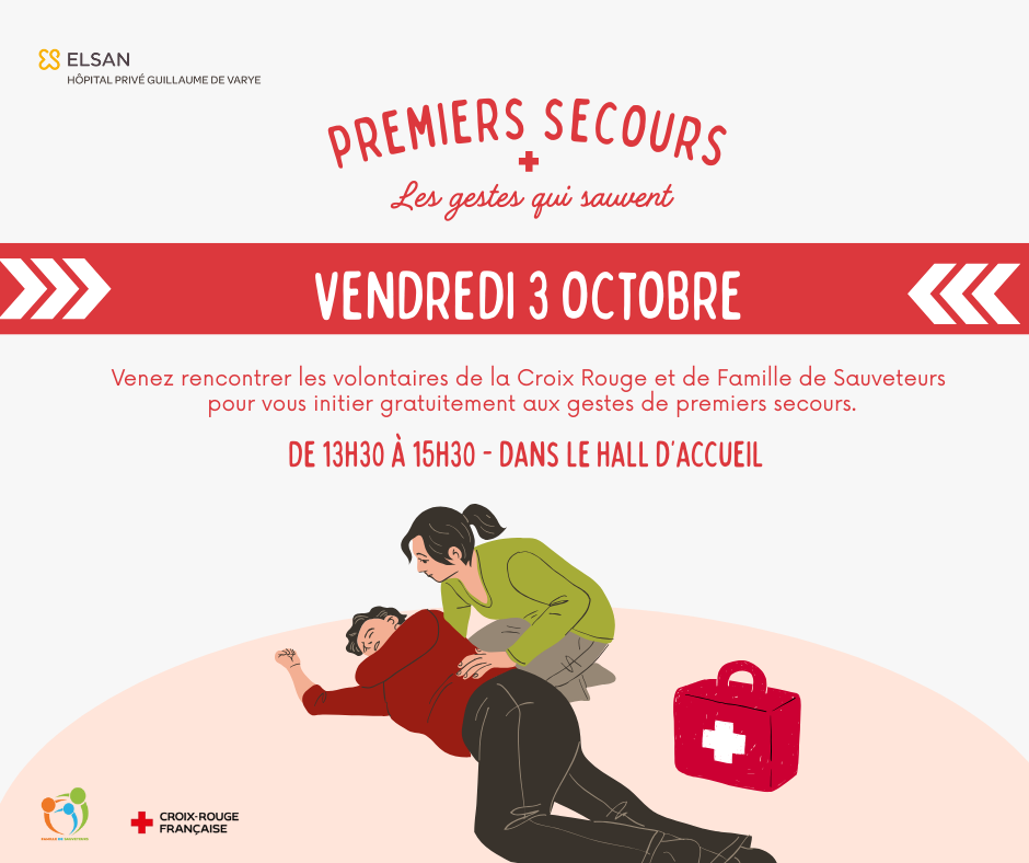 A l’occasion de la Journée mondiale des premiers secours, l’Hôpital privé Guillaume de Varye invite le grand public à une journée de sensibilisation aux gestes de premiers secours, le vendredi 3 octobre de 13h30 à 15h30. Cet événement gratuit se tiendra dans le hall d’accueil de l’hôpital.