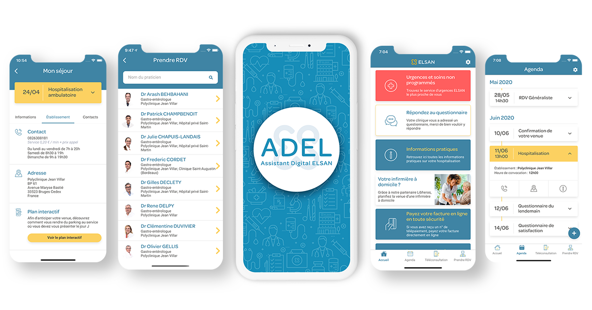 ADEL est disponible gratuitement sur IOS et Android et s’adresse désormais au plus grand nombre. La majorité des services proposés est accessible à tous, même en dehors du cadre d’une hospitalisation.