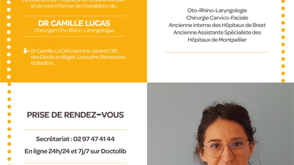 Arrivée Dr Camille LUCAS, chirurgien ORL à Vannes