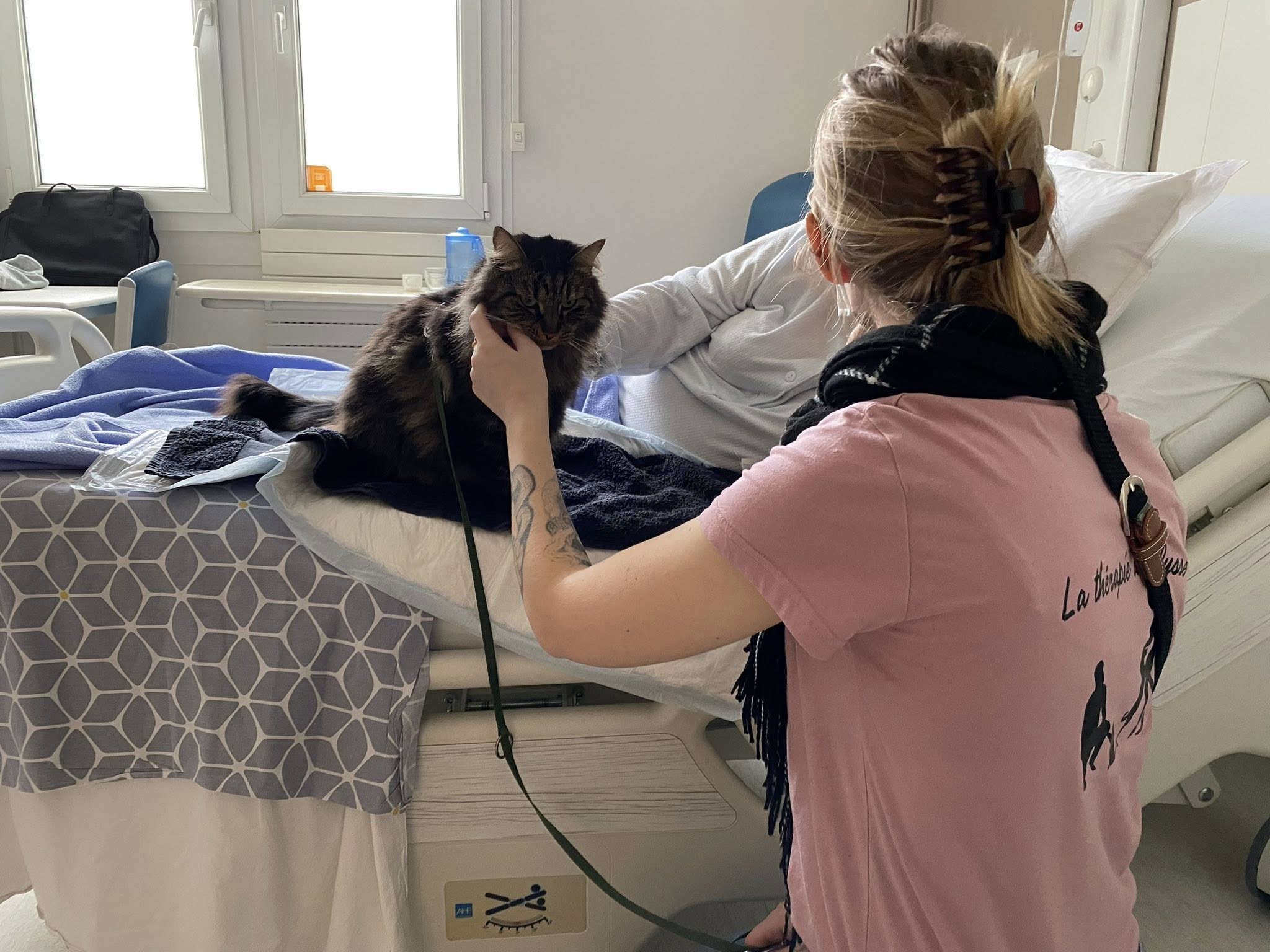 Des visites en chambre ont été organisées avec un chat et une chienne. Un très beau moment de partage et de tendresse qui a illuminé la journée de tous.