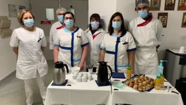 Sodexo s'est joint également à cette cause en proposant ce jour à l'ensemble des patients de chimiothérapie des chouquettes fourrées à la crème pâtissière bleue et surmontées d'une moustache.