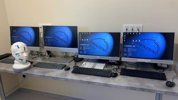 L’équipe médicale est composée de 2 spécialistes : le Dr Sofiane AJINA (pneumologue) et le Dr Djamal BOUYAHIAOUI. Ces spécialistes sont accompagnés de l’équipe paramédicale de l’Hôpital Privé Saint Claude. L’équipe a bénéficié d’une formation complète pour réaliser des enregistrements de qualité s’agissant de la polysomnographie liée à l’apnée du sommeil. Quatre chambres ont été notamment équipées de caméras qui permettent la surveillance du patient pendant son sommeil et ainsi d’avoir une analyse complète des différentes phases de sommeil du patient. Elles sont reliées à une centrale dans l’office infirmier, qui permet une surveillance de l’équipe, et d’obtenir des données exhaustives pour l’interprétation médicale.