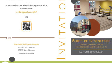 L’Hôpital Privé Saint-Claude organise une soirée de présentation de son Unité de Réadaptation CardioVasculaire (URCV) le mardi 25 juin 2024 à 20h à destination des professionnels de santé.