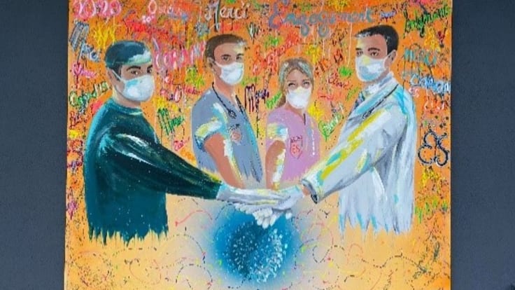 Au cours d’une cérémonie de remerciements organisée par l’Hôpital privé Saint François, Sandie Pèpe a offert une toile unique, dédiée à l’ensemble des équipes de l’établissement. « Au-delà du sens du devoir qui les anime et qui leur a donné l’énergie nécessaire pour traverser cette période si éprouvante, je souhaitais les remercier pour leur courage et leur engagement remarquables », explique l’artiste.