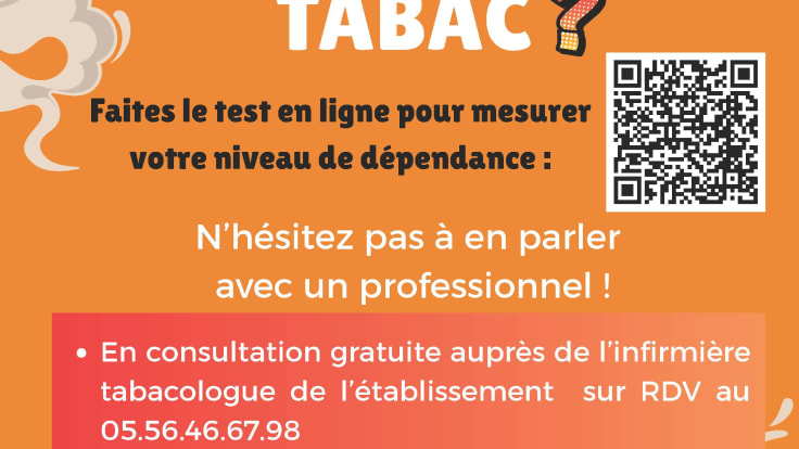 👉 Nous avons créé cette affiche diffusée au sein de l'établissement, afin de tester votre niveau de dépendance au tabac. A votre tour et découvrez des solutions adaptées à votre situation : https://www.tabac-info-service.fr/je-fais-le-point-sur-ma-dependance-physique