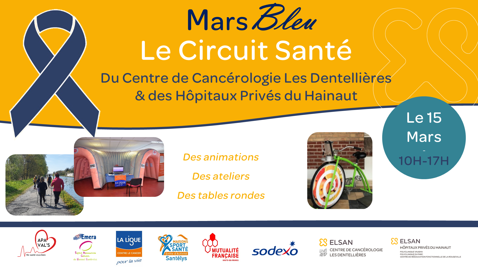 ⏩A l'occasion de Mars Bleu, le Centre de Cancérologie Les Dentellières & les Hôpitaux Privés du Hainaut organisent un Circuit Santé !