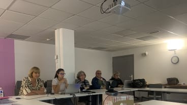 Le Dr Caroline ANDRES, médecin nutritionniste, Sophie MORY, psychologue et Raphaëlle ANGELOZZI, diététicienne, Julie PERNELLE, kinésithérapeute, Nelly TAQUET, infirmière éducation thérapeutique et Séverine LETOT, Coordonnatrice de Parcours de soins étaient présentes pour répondre aux questions et interrogations.