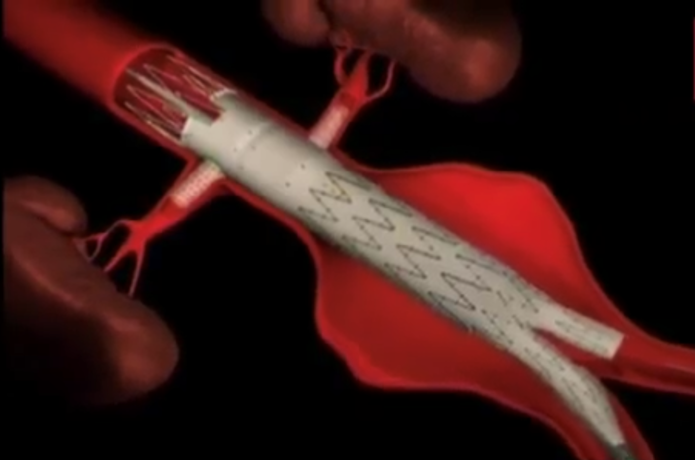 Ce traitement consiste à implanter, par voie endovasculaire, une endoprothèse au niveau de l'anévrisme, créant ainsi une nouvelle voie de passage pour le sang, et renforçant la paroi artérielle. Il s’agit d’une Endoprothese simple pour un anévrisme abdominal infra renal et une endoprothese fenêtrée pour un anévrisme englobant les artères rénales et digestives.