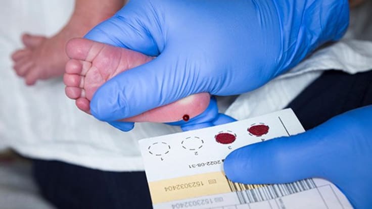 Ce dépistage est réalisé en prélevant des gouttes de sang sur un buvard, après une petite piqûre au talon du nouveau-né.