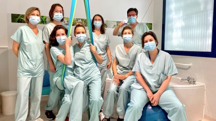 Un grand merci à l’équipe de l’unité naissance de la Maternité Santé Atlantique pour leur belle photo d’équipe au sein de la salle de travail physiologique !