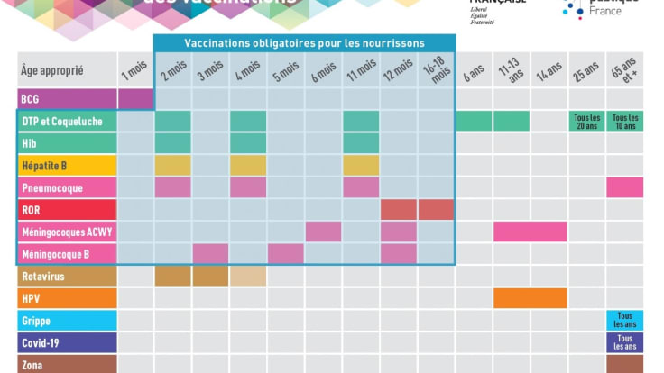 Calendrier vaccinal officiel fourni (illustration).