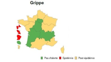La carte de la grippe dans l'hexagone n'est plus colorée qu'en jaune et vert :
