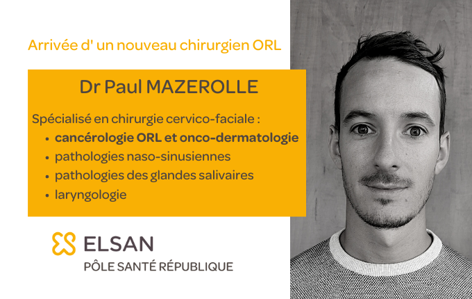 Nous souhaitons la bienvenue au Dr Paul Mazerolle, nouveau chirurgien ORL exerçant au PSR, qui succède au Dr Thierry Champroux.