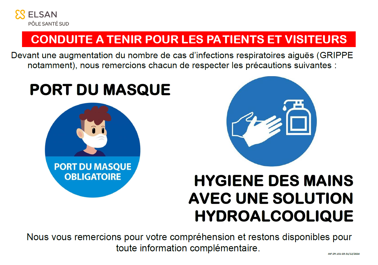Des conduites sont à tenir pour les patients et visiteurs !