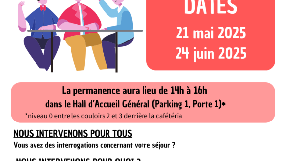 Les 21 mai et 24 juin 2025 se tiendront des permanences des Représentants des Usagers, de 14h à 16h au Pôle Santé Sud.