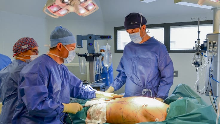 Cette technique est utilisée depuis 6 mois au Pôle Santé Sud et permet des résultats spectaculaires. Pour parfaire sa technique opératoire, le Dr Daniel ARNAUD était accompagné du Dr Jordi MIR, spécialiste de cette méthode, ce vendredi 13 janvier 2022 au Pôle Santé Sud. Ils ont réalisé une procédure opératoire sur la ceinture abdominale d’un patient et lui ont dessiné le « six pack » (tablettes de chocolat).