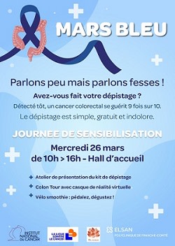 Cancer colorectal Gastro-entérologie Polyclinique de Franche-Comté 12/03/2025 Mars Bleu : mois de sensibilisation au cancer colorectal Vous avez aimé cette page ? Partagez-la !