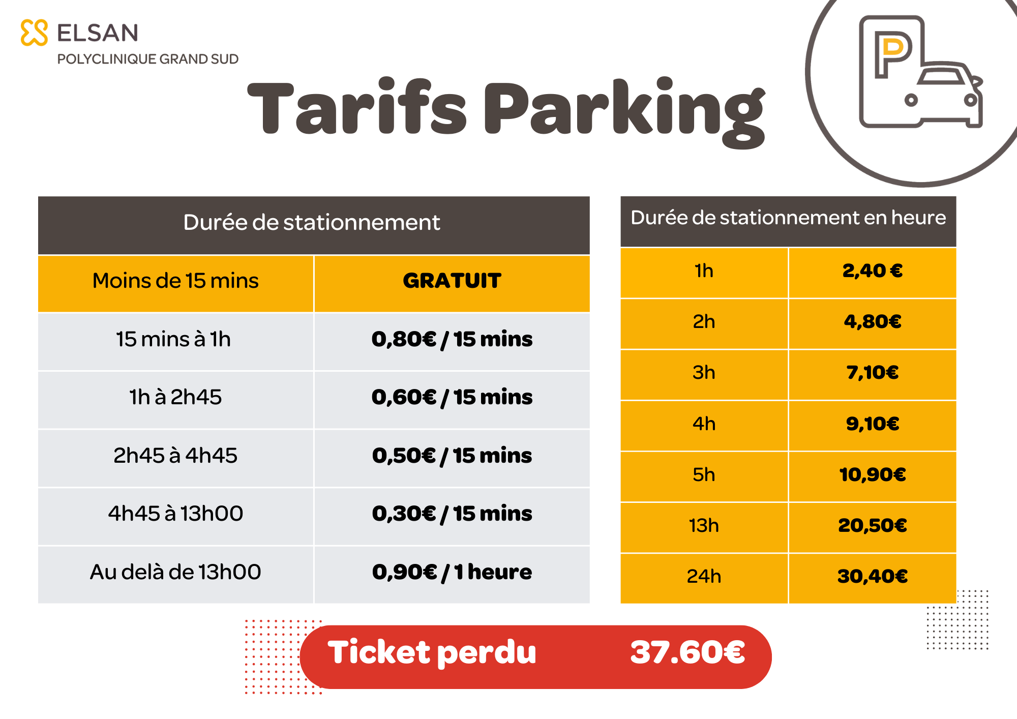 Un parking extérieure de la Polyclinique Grand Sud est à votre disposition via l'avenue de la Bouvine.