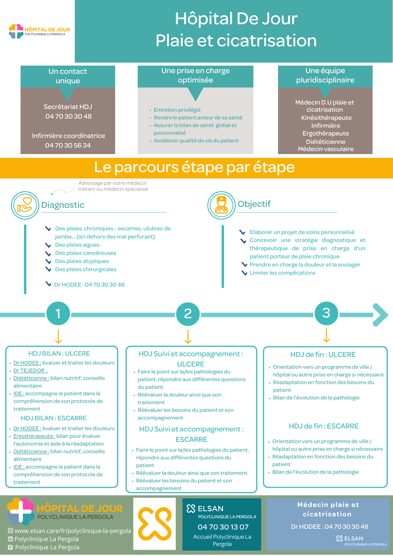 L'hôpital de jour plaie et cicatrisation est un service de diagnostic et de soin des plaies complexes au sein de notre établissement :
