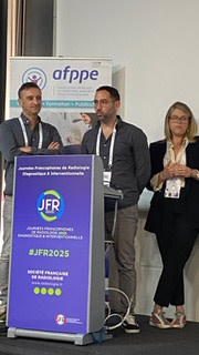 Lors des JFR 2025, nos manipulateurs en électroradiologie,Marine Sandoz et Fabien Bocquet laccompagnés du docteur Francois Casalonga , ont présenté la mise en place de la cryoablation au service de scanner interventionnel de la polyclinique des Fleurs.