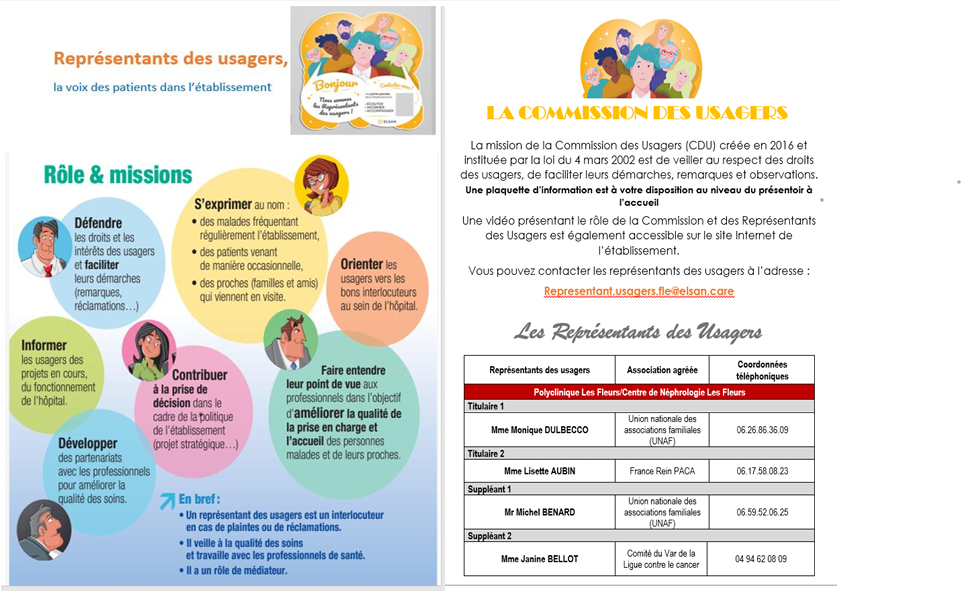 Fortement impliquées sur le territoire, les cliniques du groupe ELSAN de l’aire toulonnaise ont réalisé une vidéo avec la participation de leurs représentants des usagers pour informer les patients sur l’existence et le fonctionnement des commissions des droits des usagers. Cette initiative a été labellisée lors du trophée des usagers de l’ARS PACA en 2019.