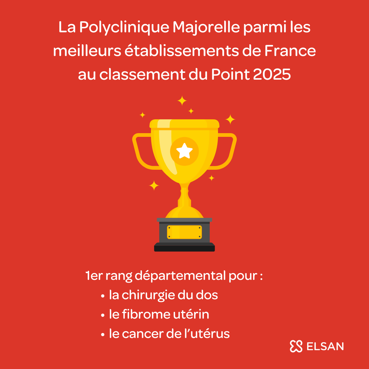 L’hebdomadaire Le Point vient de publier son palmarès 2025 des meilleurs hôpitaux et cliniques de France. Parmi les 347 établissements privés évalués, la Polyclinique Majorelle, établissement du groupe ELSAN, se distingue une nouvelle fois en se plaçant au :
