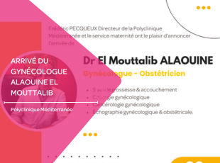 Nous avons le plaisir de vous informer de l'arrivée du Dr ALAOUINE El Mouttalib au sein de notre établissement. Ce nouveau membre de notre équipe médicale viendra enrichir nos services avec son expertise et son expérience.