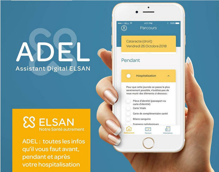 ADEL est disponible gratuitement sur IOS et Android et s’adresse désormais au plus grand nombre. La majorité des services proposés est accessible à tous, même en dehors du cadre d’une hospitalisation.