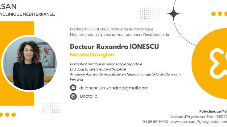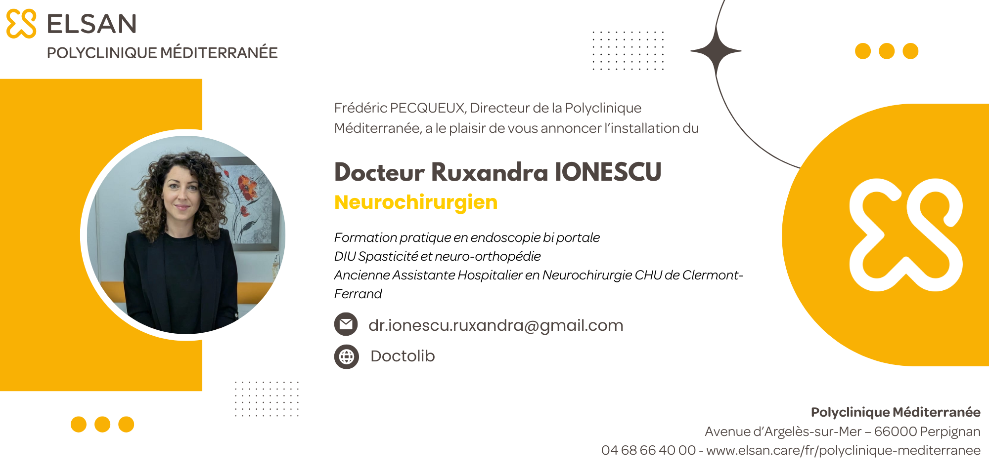 Actualité médicale Polyclinique Méditerranée 06/05/2025 Arrivée du Dr. IONESCU Nous avons le plaisir d’accueillir au sein de notre établissement , le Dr Ruxandra IONESCU, spécialiste en Neurochirurgie. Vous avez aimé cette page ? Partagez-la !