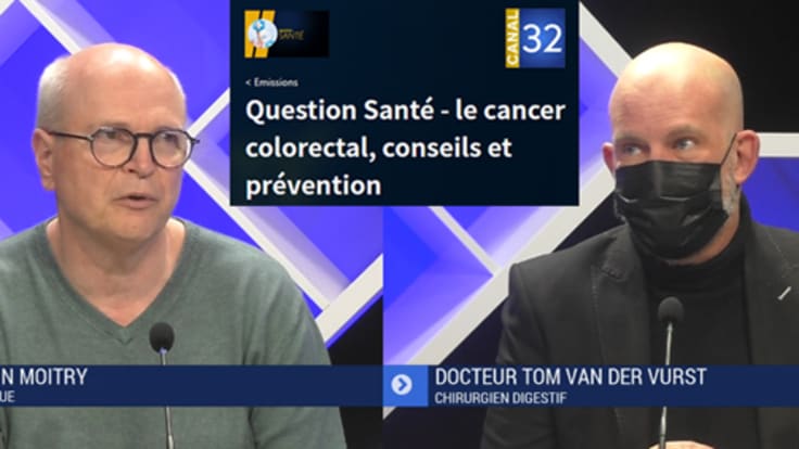 A l’occasion de Mars Bleu, le mois dédié à la campagne nationale de prévention et de lutte contre le cancer colorectal, le Dr Moitry et le Dr Van Der Vurst étaient les invités d’Aurélie Juignet dans l’émission Question Santé du Canal 32.