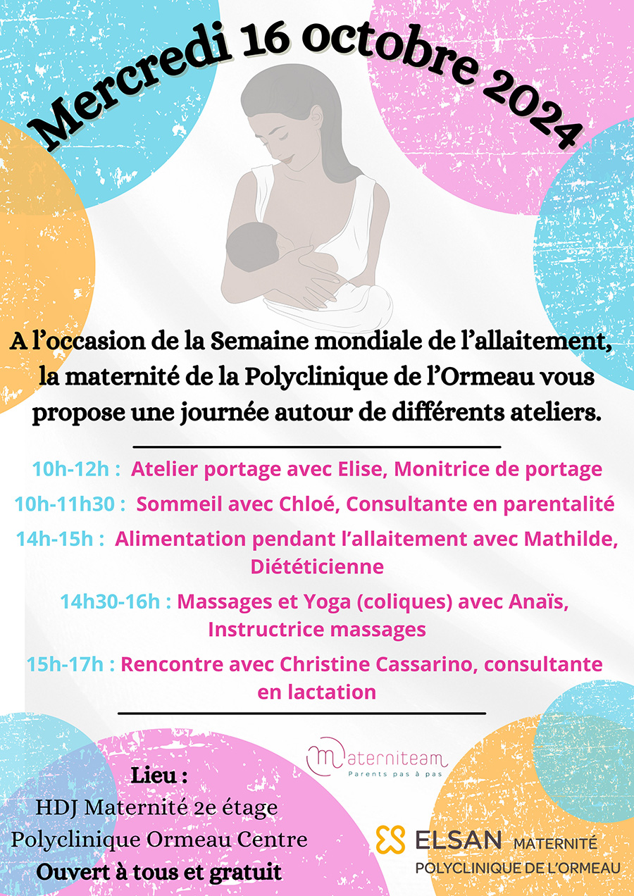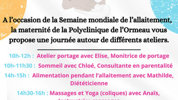 À l’occasion de la semaine mondiale de l’allaitement, notre maternité accueille futurs parents, parents et enfants pour une journée organisée autour de différents ateliers, le mercredi 16 octobre.