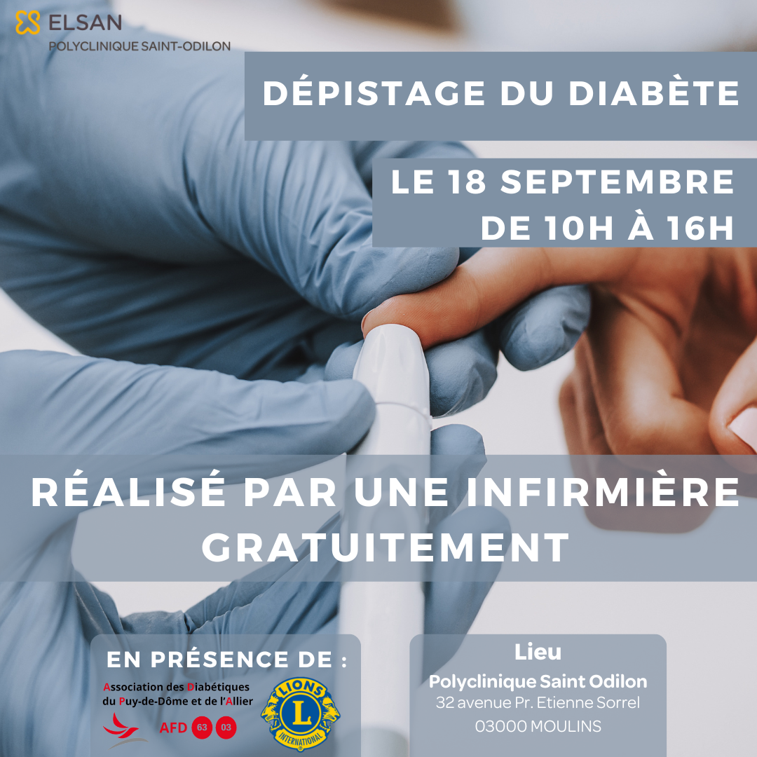 La Polyclinique Saint-Odilon organise le 18 septembre de 10h00 à 16h00 un dépistage gratuit du diabète !