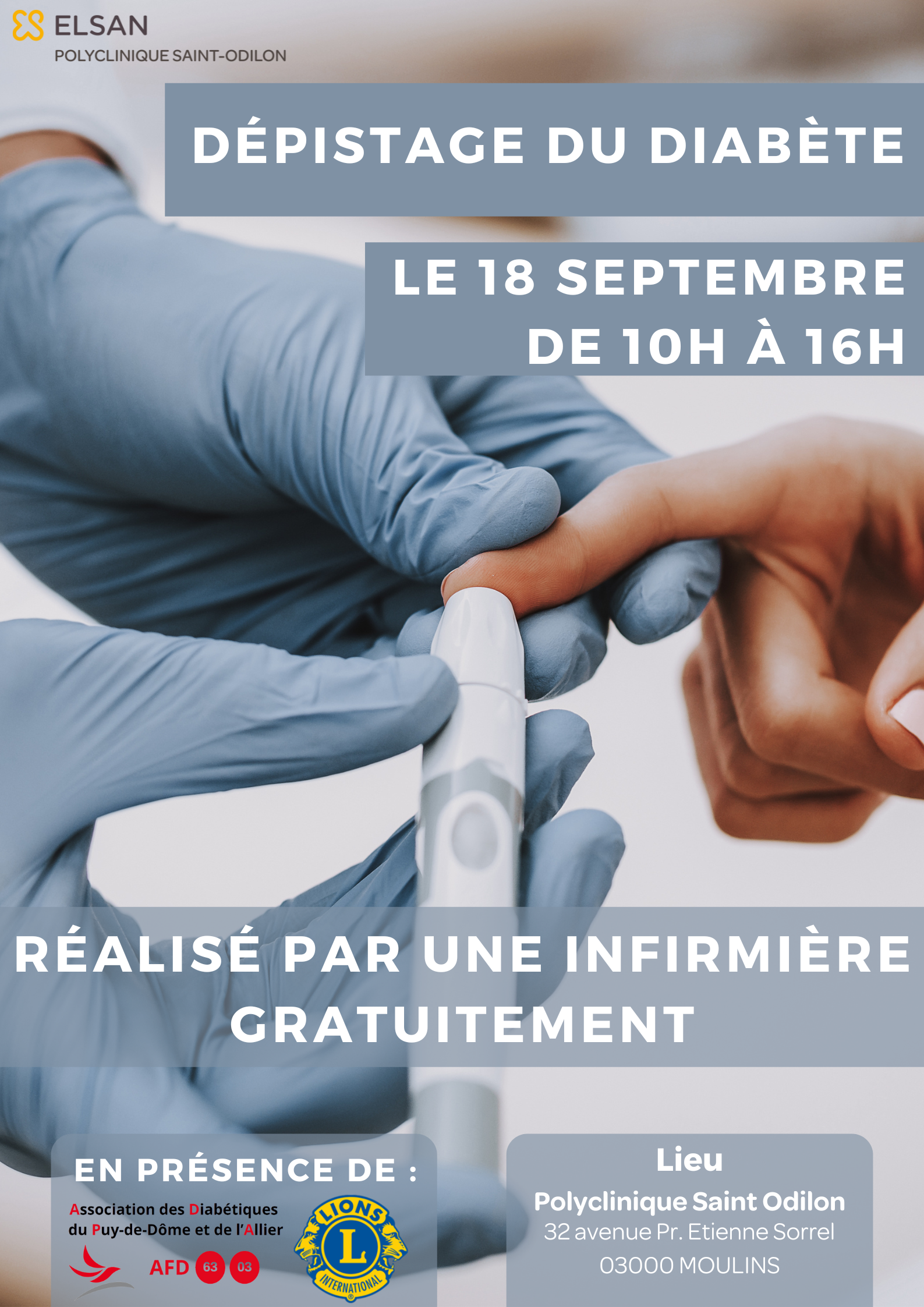 La Polyclinique Saint-Odilon organise le 18 septembre de 10h00 à 16h00 un dépistage gratuit du diabète !