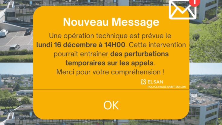 🔧 Cette intervention pourrait entraîner des perturbations temporaires sur les appels. Merci pour votre compréhension ! 🙏