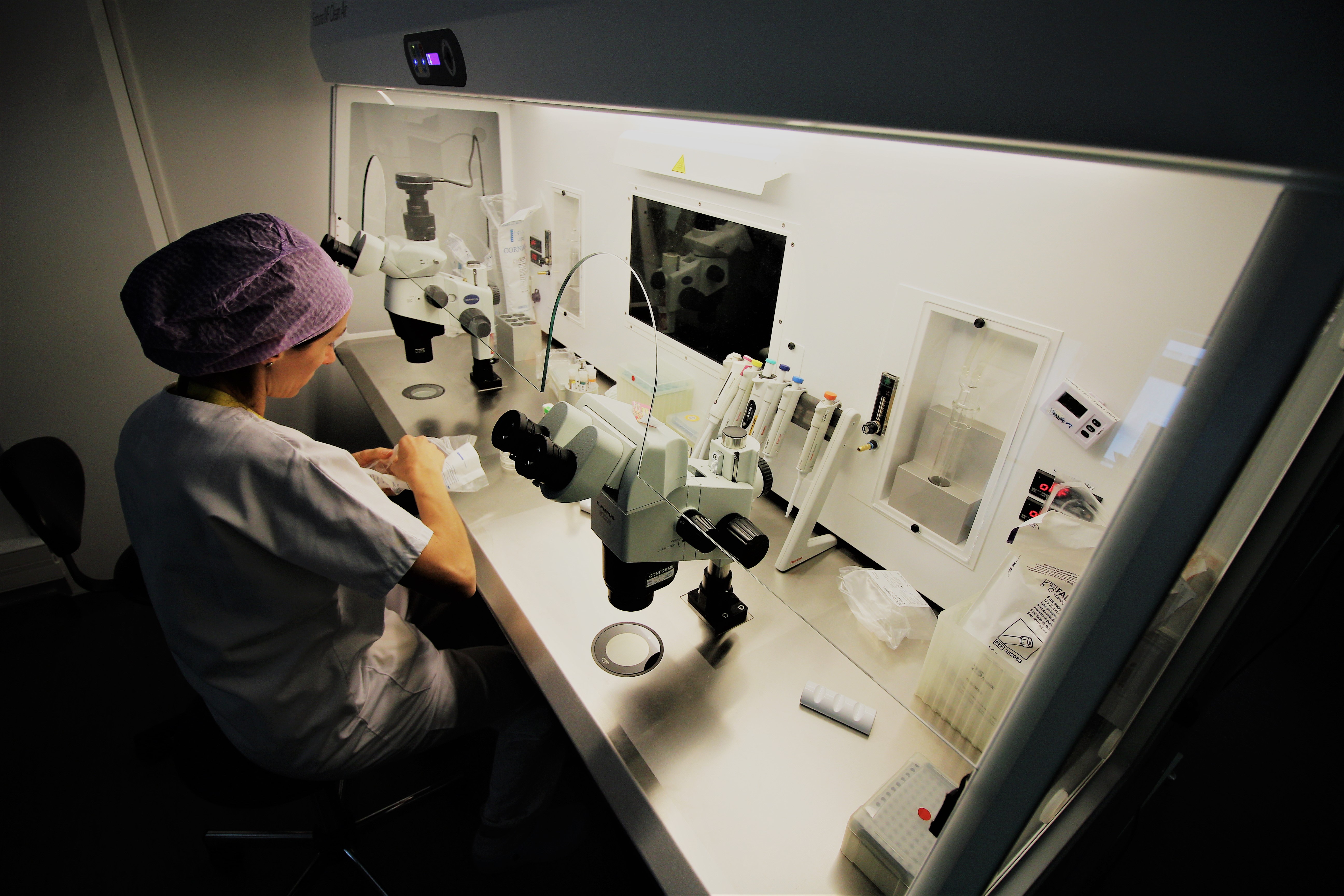 Sur une centaine de centres de procréation médicalement assistée (PMA) en France, celui de la polyclinique Urbain V est classé sixième. "Tout ce que nous avons mis en place depuis un an et demi a déjà fait écho puisque nous comptabilisons 400 tentatives de fécondation in vitro depuis le début de l’année, nous en aurons environ 800 fin 2019." Outre, au premier étage, la prise en charge des couples et leur accueil, des équipements de pointe ont été installés au rez-de-chaussée, dans le laboratoire de fécondation in vitro. On y entre coiffé d’une charlotte, vêtu d’une blouse et couvre-chaussures aux pieds. C’est dans cet endroit à l’air exempt de tout microorganisme ou composé organique volatile (COV) - "comme dans un bloc opératoire", note le Dr Scalici -, que les ovules sont fécondés et que les embryons naissent.