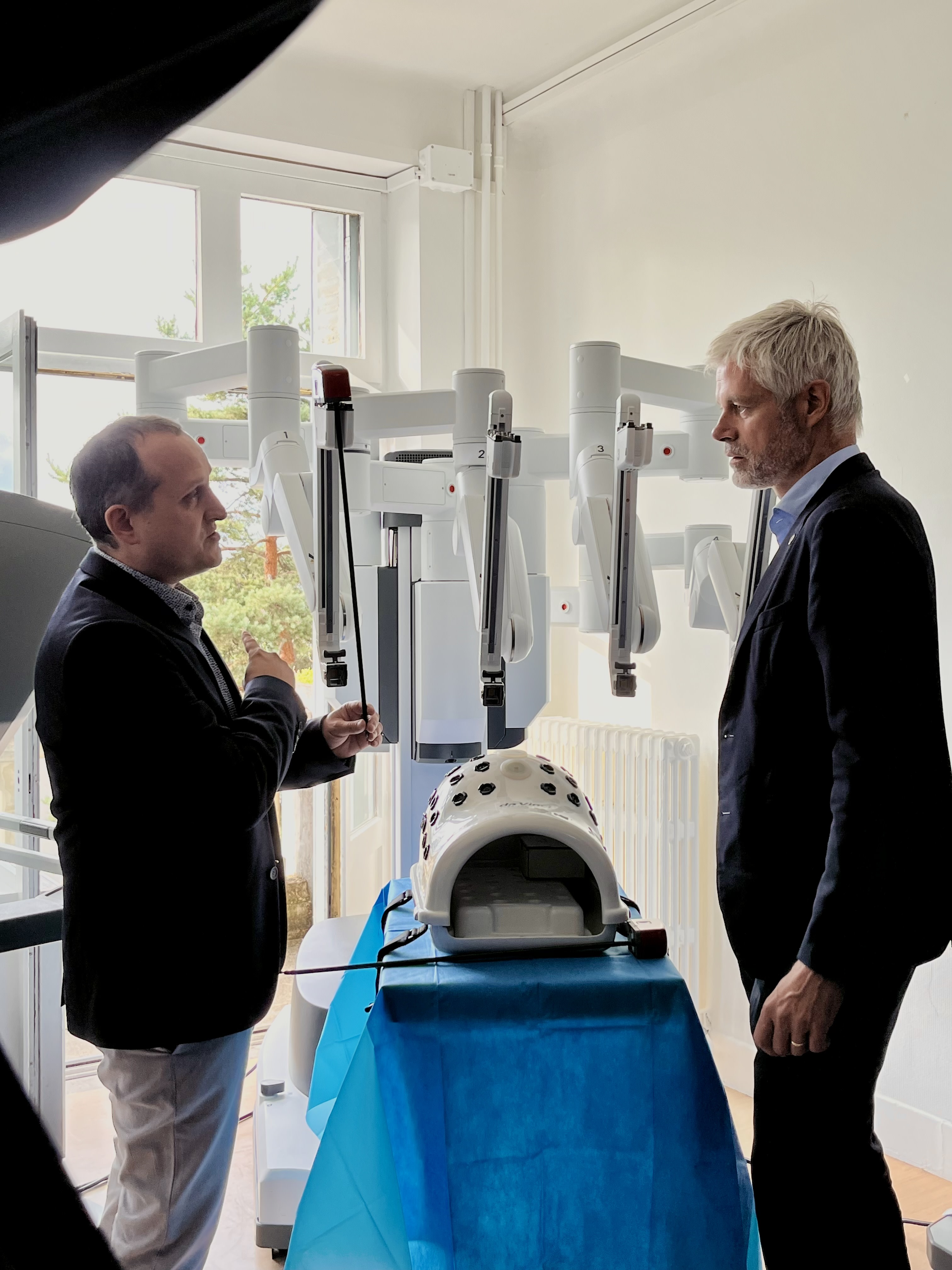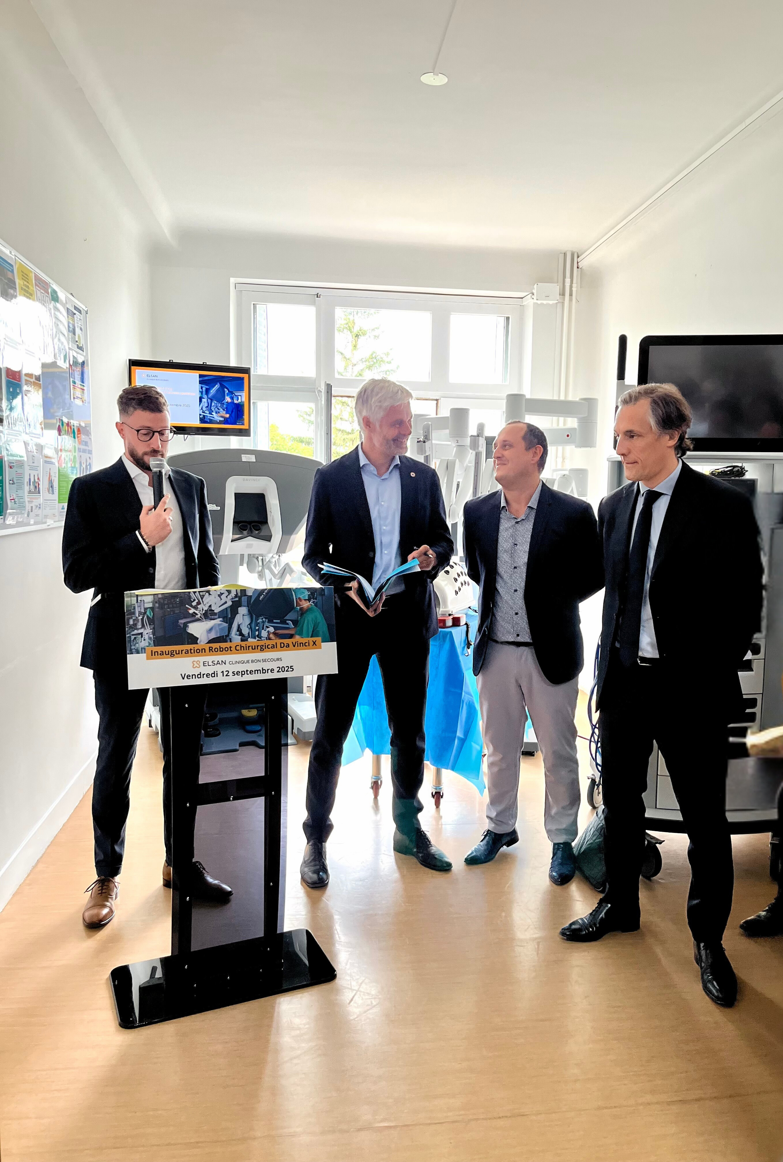 Inauguration du robot chirurgical da Vinci X en présence de Laurent Wauquiez, député et conseiller spécial de la région Auvergne-Rhône-Alpes à la Clinique Bon Secours