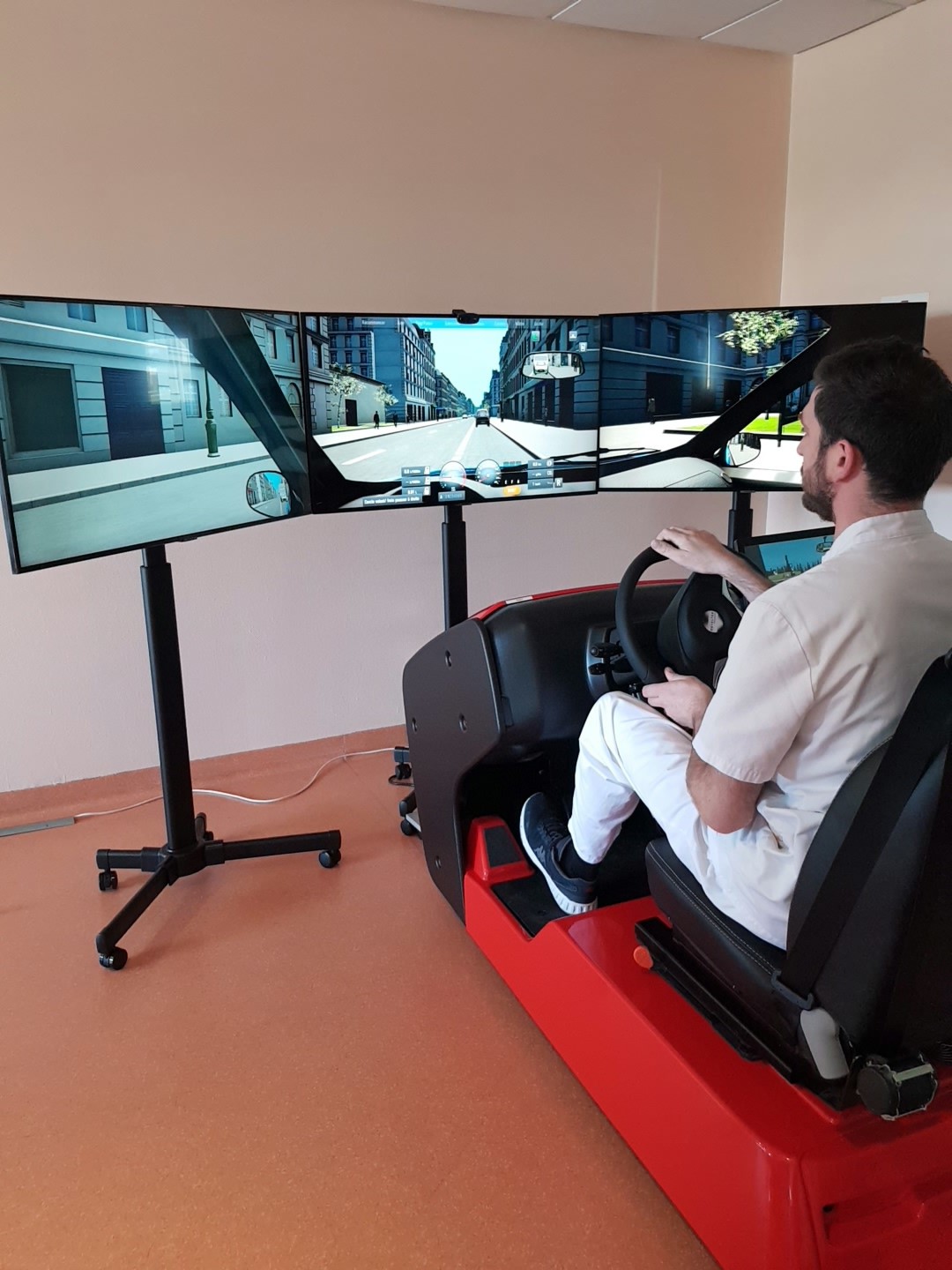 Le simulateur de conduite, Réhab Évolution®, joue un rôle clé dans la rééducation des patients souffrant de lésions cérébrales, d’un traumatisme, … en leur offrant des séances personnalisées. Cette technologie de pointe permet une rééducation efficace et ludique, d’évaluer les fonctions sensitives, cognitives et visuelles, et ainsi de déterminer les éléments favorables ou non à la reprise de la conduite.