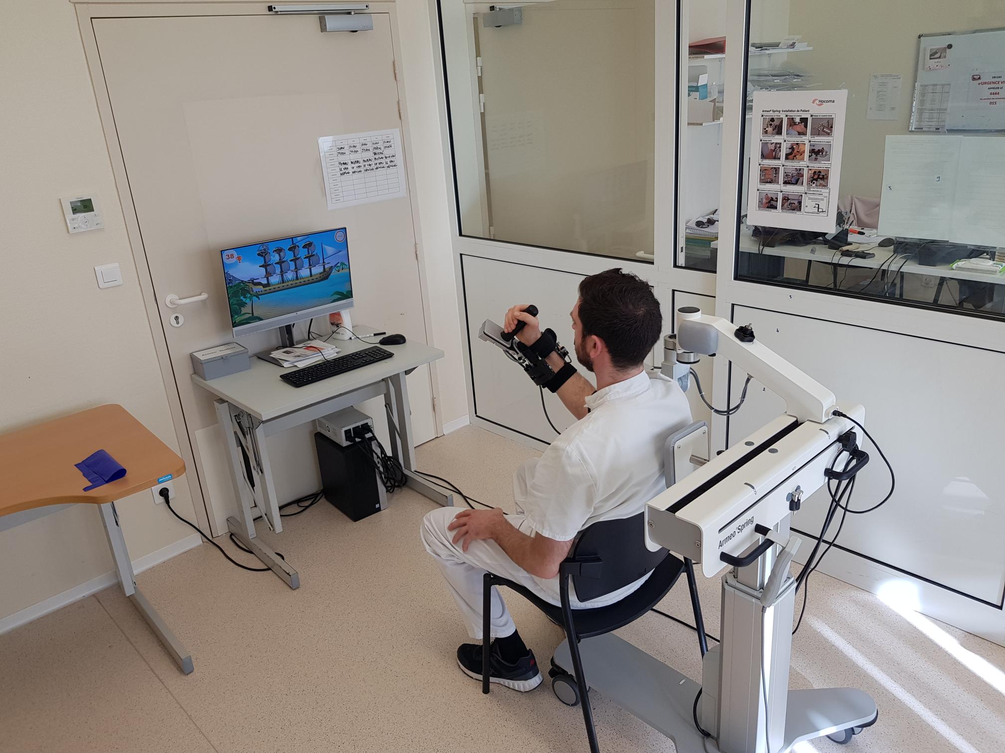 Parmi les dispositifs révolutionnaires déployés à la Clinique SMR du Sud, l'Arméo®, dispositif de rééducation des capacités neuromotrices permettant la mobilisation du membre supérieur, grâce à un exosquelette. Adapté à une prise en charge rééducative diversifiée et précise, l'Arméo® offre des séances allongées, enregistrant les progrès réalisés de l'évolution du patient.