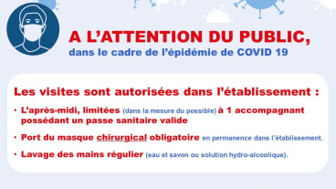 - limitées (dans la mesure du possible) à 1 accompagnant possédant un passe sanitaire valide,
